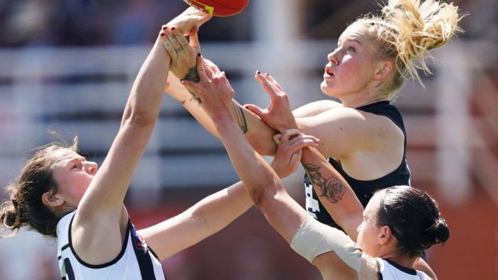 Carlton’s woes had been compounded by co-captains Katie Loynes (knee) and Kerryn Harrington (thigh) limping from the sector within the second and third quarters respectively. The pair performed out the sport, however appeared hampered, whereas teammate Grace Egan was concussion-tested within the ultimate time period.